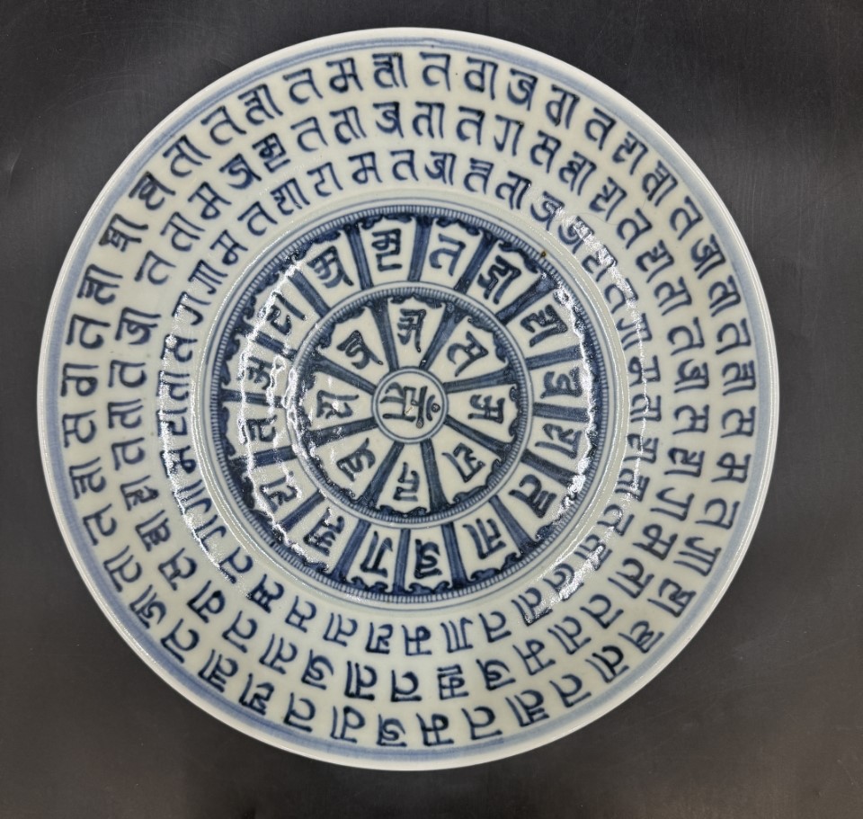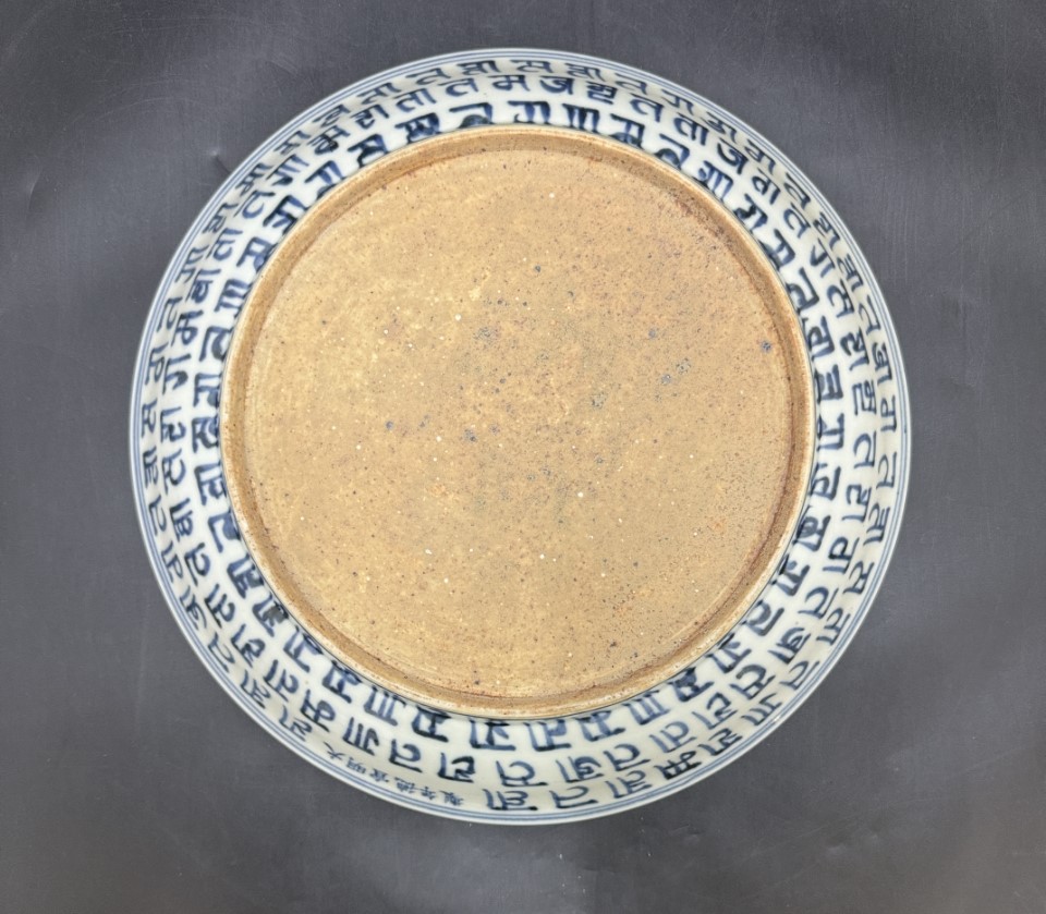 盤底的沙胎包漿如時光沉淀的琥珀,每一粒細(xì)砂都是窯火與歲月的印記。它不止是賞器,更是明代絲路貿(mào)易的活檔案:當(dāng)景德鎮(zhèn)的瓷土遇見波斯的文字,當(dāng)東方的窯火焙燒出西方的詩行,這方大盤便成了文明對話的信物。