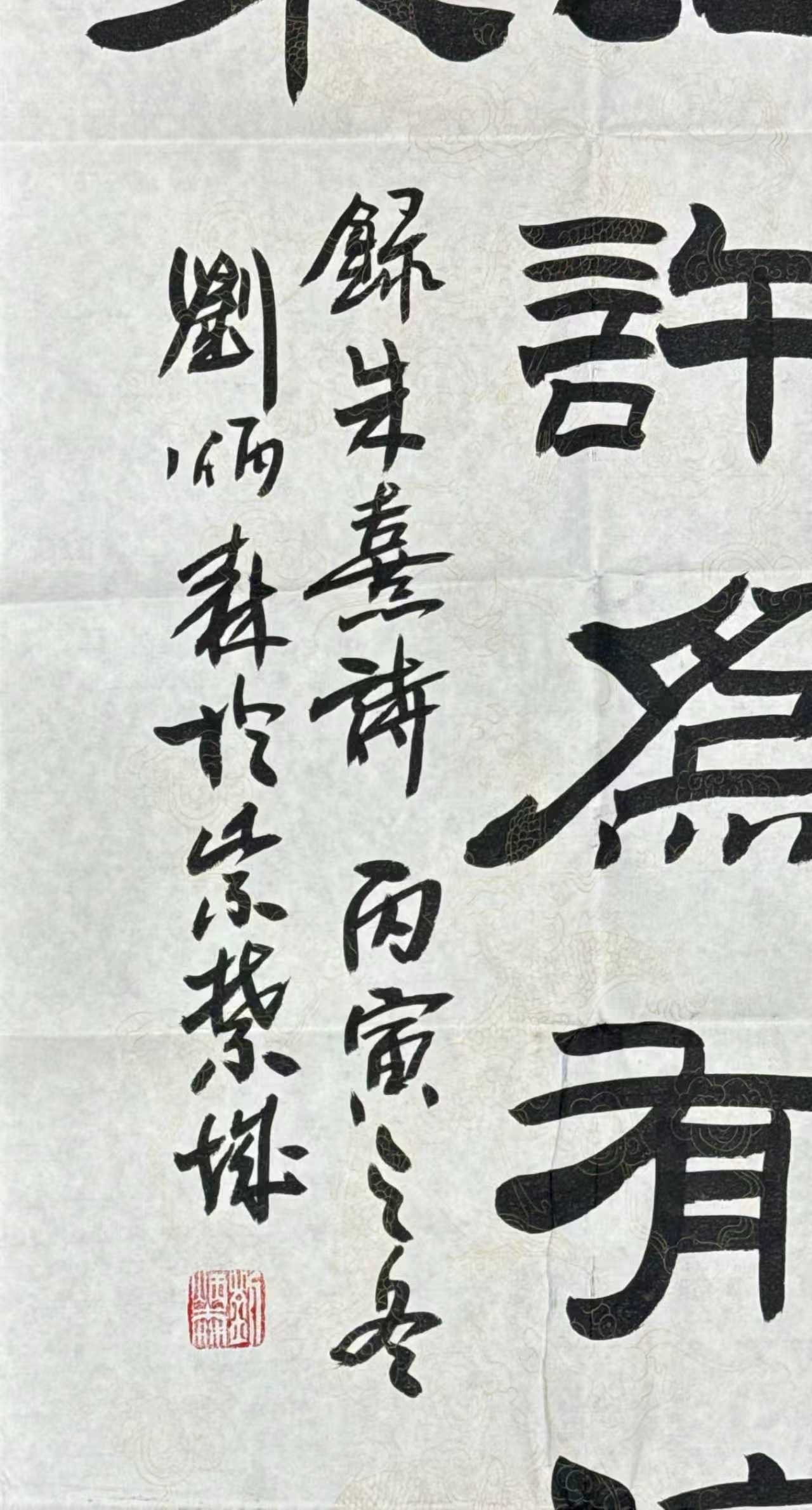 款印雙絕:左側(cè)行書題款 “錄朱熹詩 丙寅之冬 劉炳森于京”,與隸書剛?cè)嵯酀烩j印 “劉炳森印” 章法嚴謹,是其作品的典型標(biāo)識。